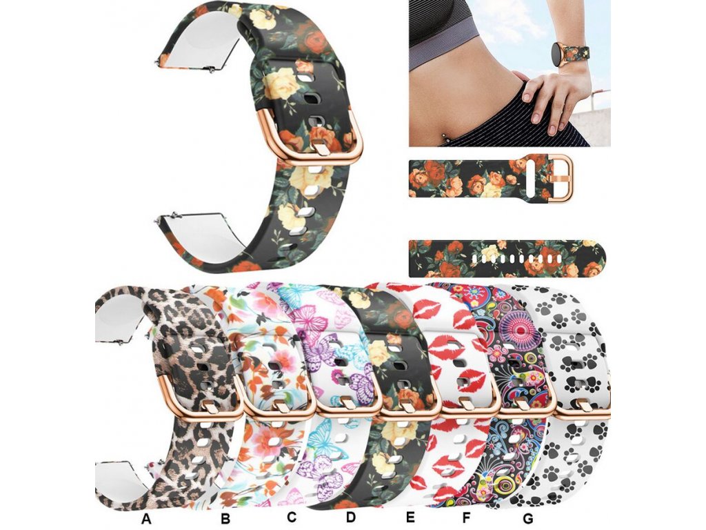 Náhradní řemínek univerzální s potiskem šířka 20 mm Garmin Vivoactive 6, 5, Forerunner 570 42 mm, Amazfit Active 2, GTS 4 GTS 4 mini a další 2005